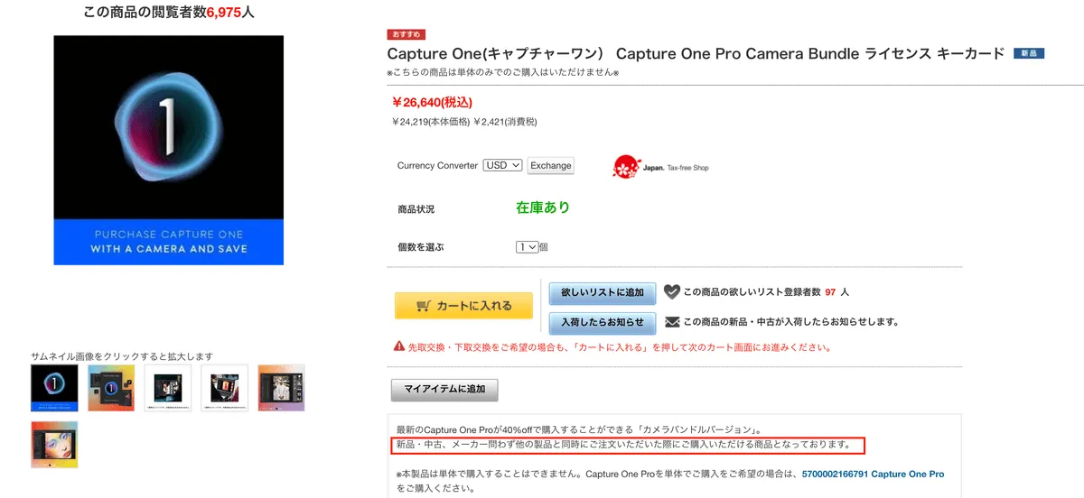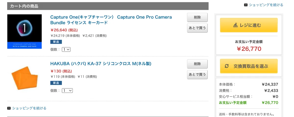 Capture One + クリーニングクロス合わせて、¥26,770 です。