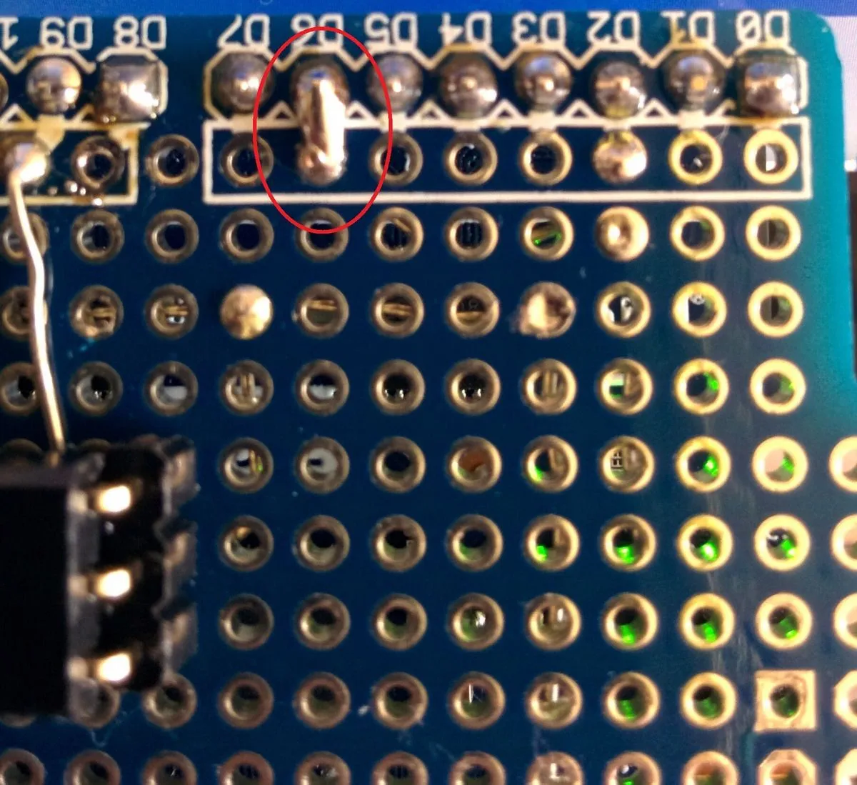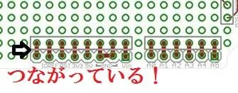 Arduinoに接続するピン穴に注目ですが、この手前のピン穴とつながっていることがわかりました