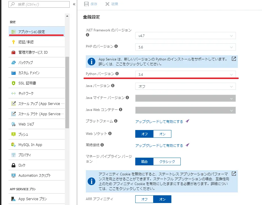 アプリケーション設定を開き、お好きなPythonバージョンを選択する