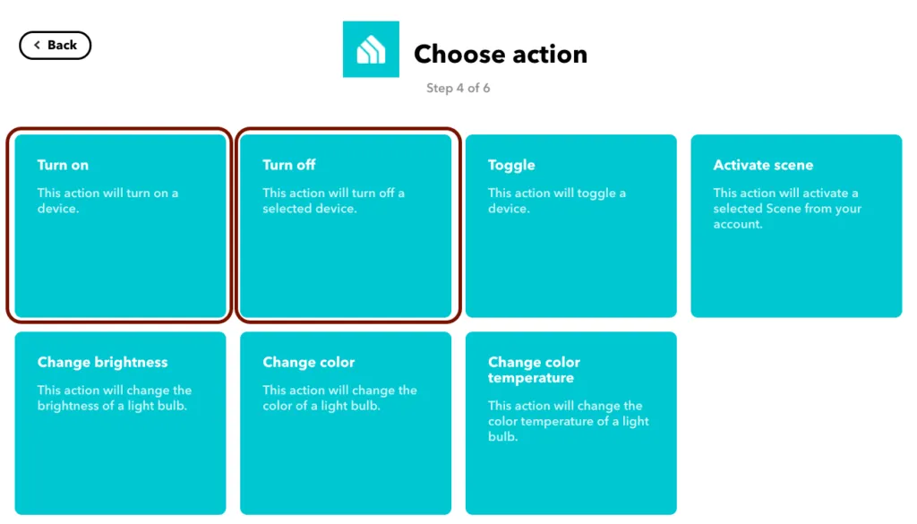 Web hooks に kasa の “Turn on” と “Turn off” を登録してあげます。