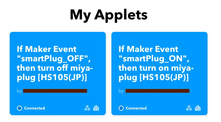 スマートプラグ OFF : トリガーは smartPlug_OFF ttps://maker.ifttt.com/trigger/smartPlug_OFF/with/key/YOUR_WEBHOOKS_API