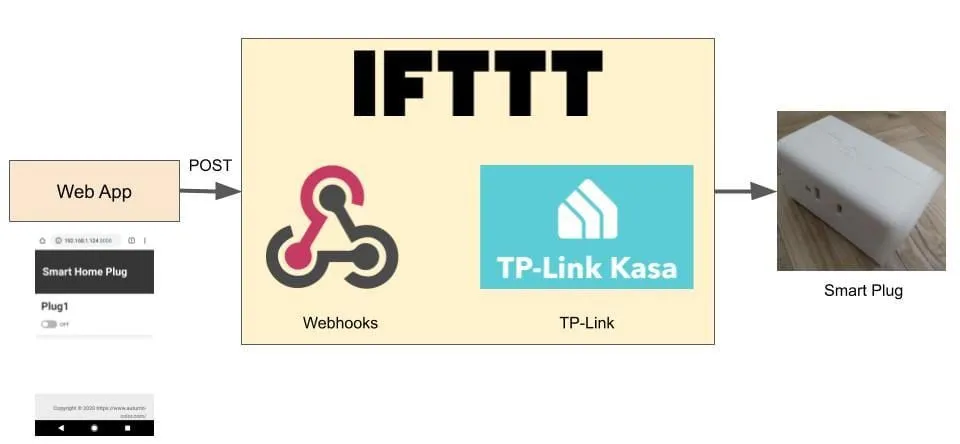 つくりは単純で Web アプリから POST を行い、 IFTTT がいい感じに解釈をしてスマートプラグを ON/OFF してくれます。