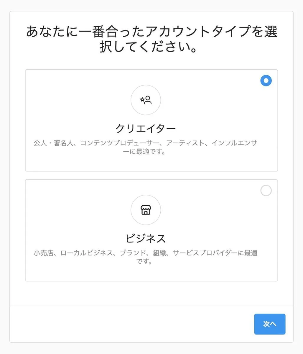 クリエーター向けかビジネス向けかを聞かれますが、たしかどちらでも良いはずです。