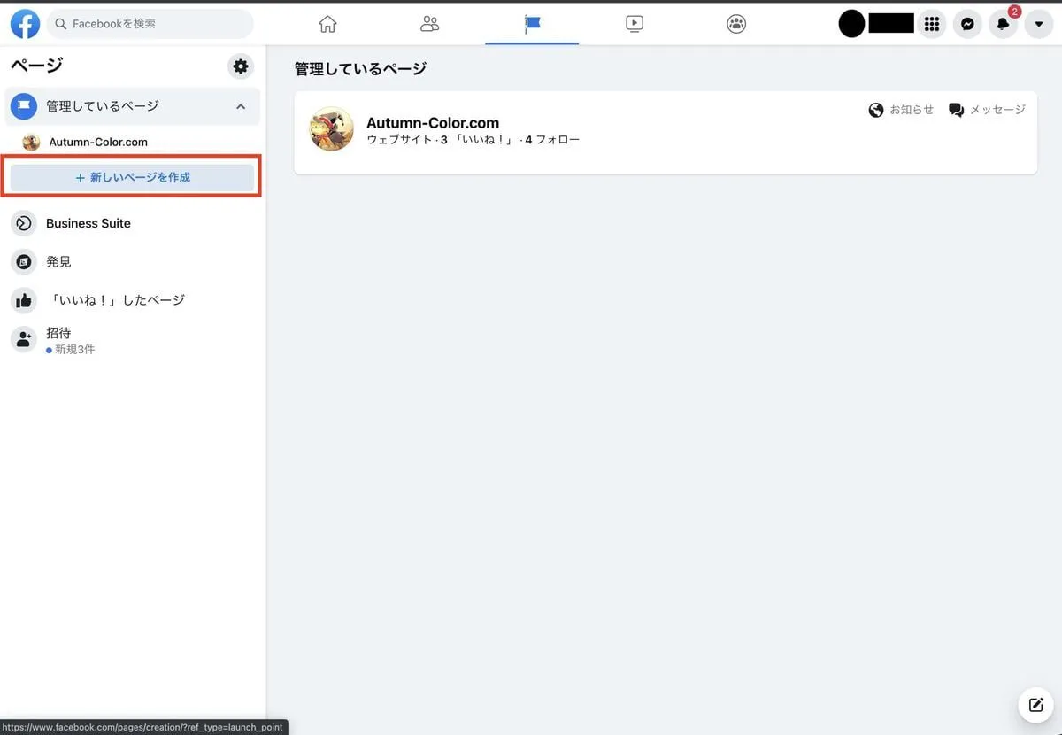 Facebookに移動し、個人用のページを作成します。