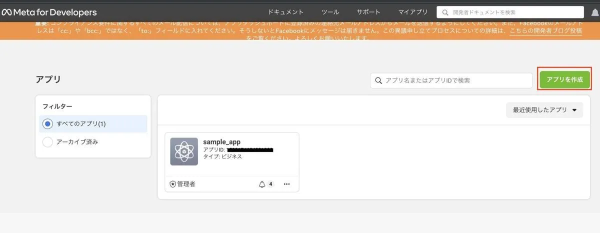 Meta for Developer のサイトに行きます。