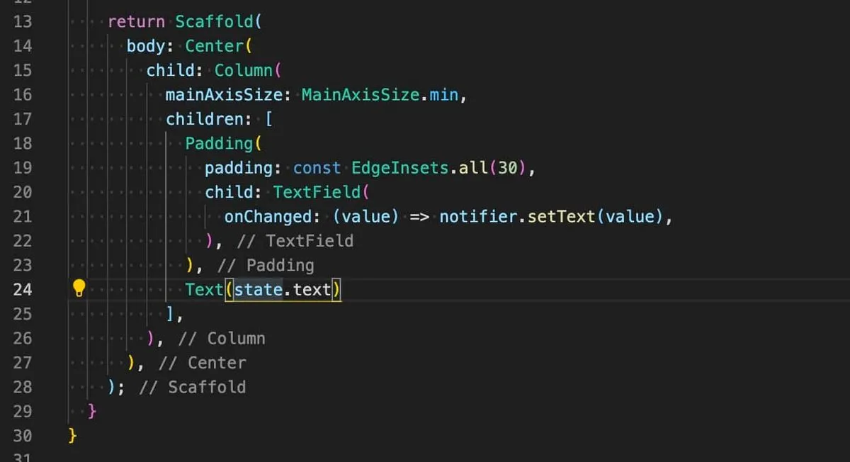 TextFiled の onChange で入力文字を受け取り、受け取った文字を provider に流しています。
