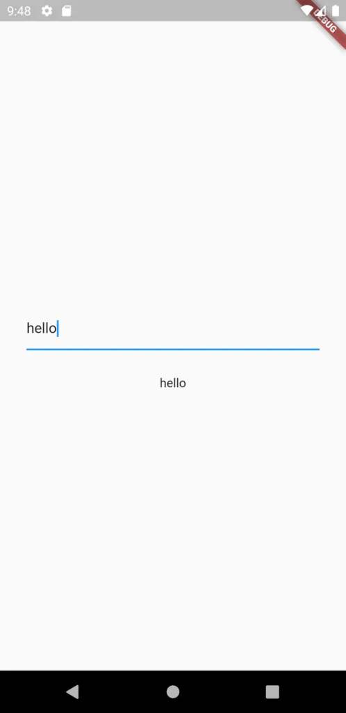 以下のような Textfiled に文字を書くとの text wdiget に書いた文字が反映されるアプリをつくたいとします。