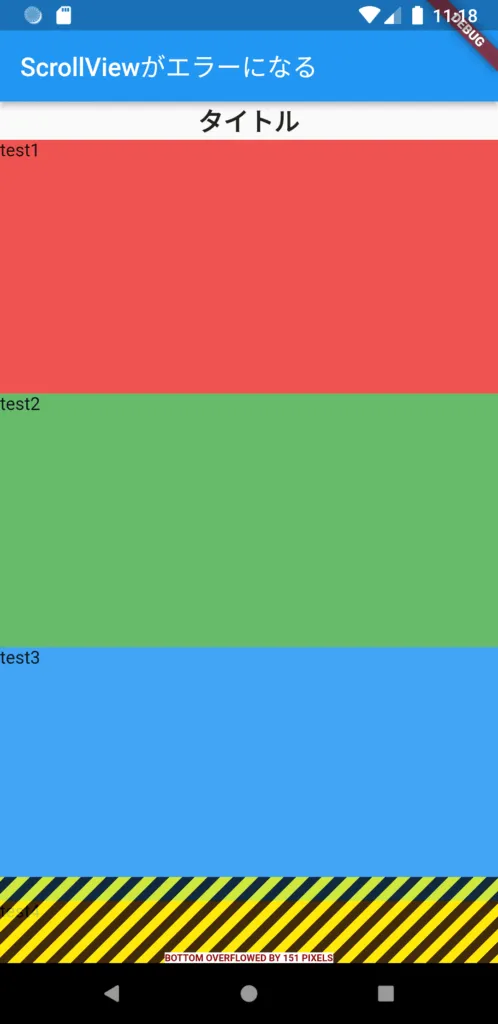 テキトーに翻訳すると SingleChildScrollView() が画面から溢れて表示できないと言われています。