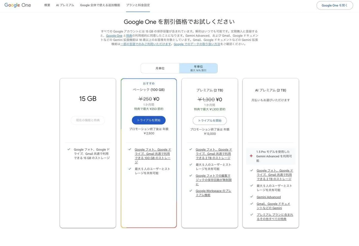 | Google のストレージ料金 |