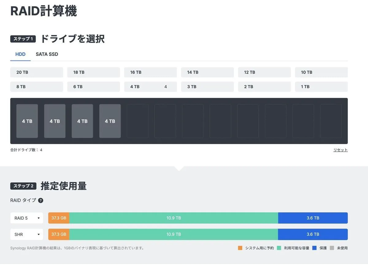 | https://www.synology.com/ja-jp/support/RAID_calculator |