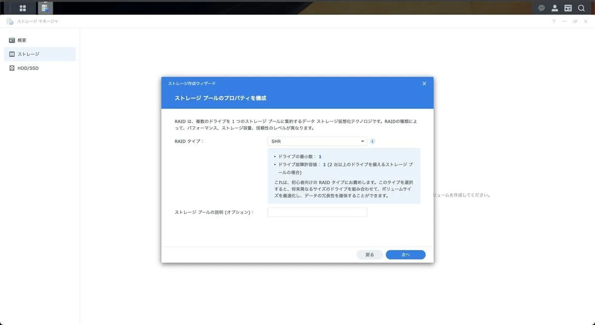RAID設定を SHR にする。