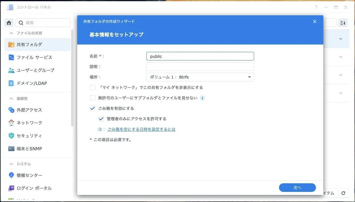 あとは共有フォルダの設定から、読み書きできるユーザを絞ったフォルダをつくればおわり。