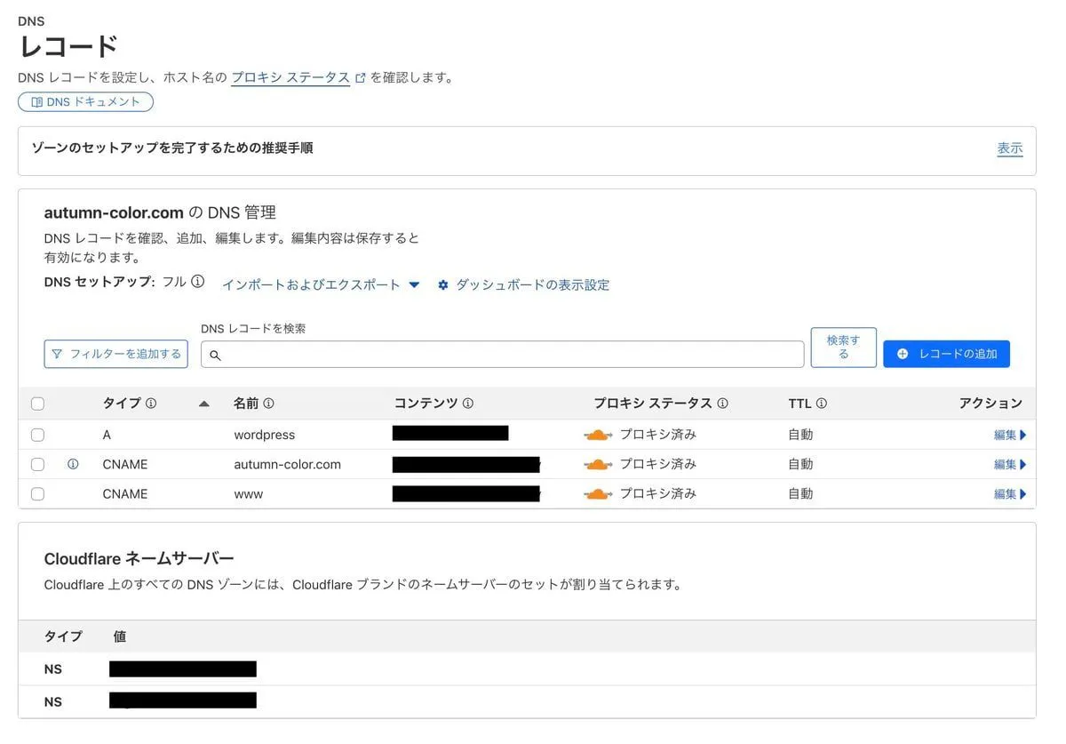 CloudFlare の DNS 設定へ行く。