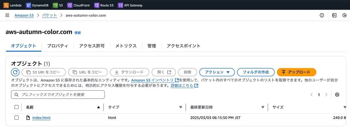 CDKで生成されたS3バケットの中にテキトーな index.html を入れる