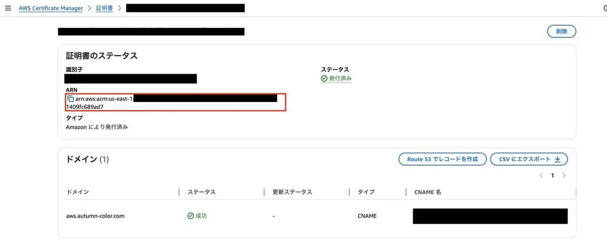 証明書の作成後、 arn を控えておくこと。