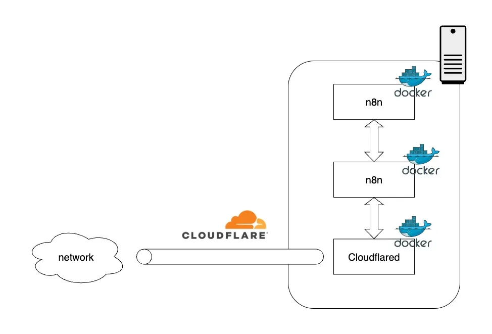 私が使用している環境は以下の通りです。 mac mini上でn8n、PostgreSQL、cloudflaredを稼働させています。