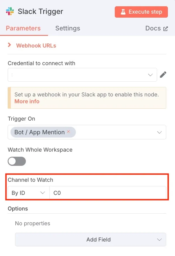 SlackのTriggerノードを追加し、Execute step でテスト実行した際にこのエラーが発生しました。