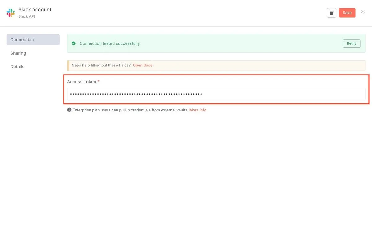 このトークンをn8nの Credential to connect with に設定します。