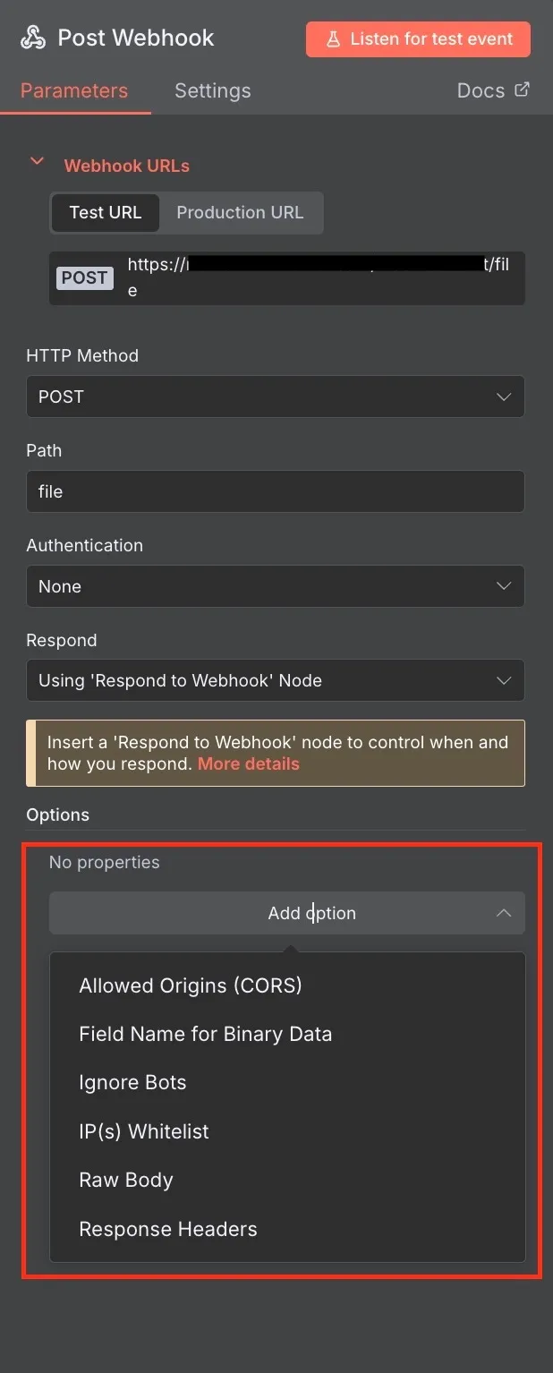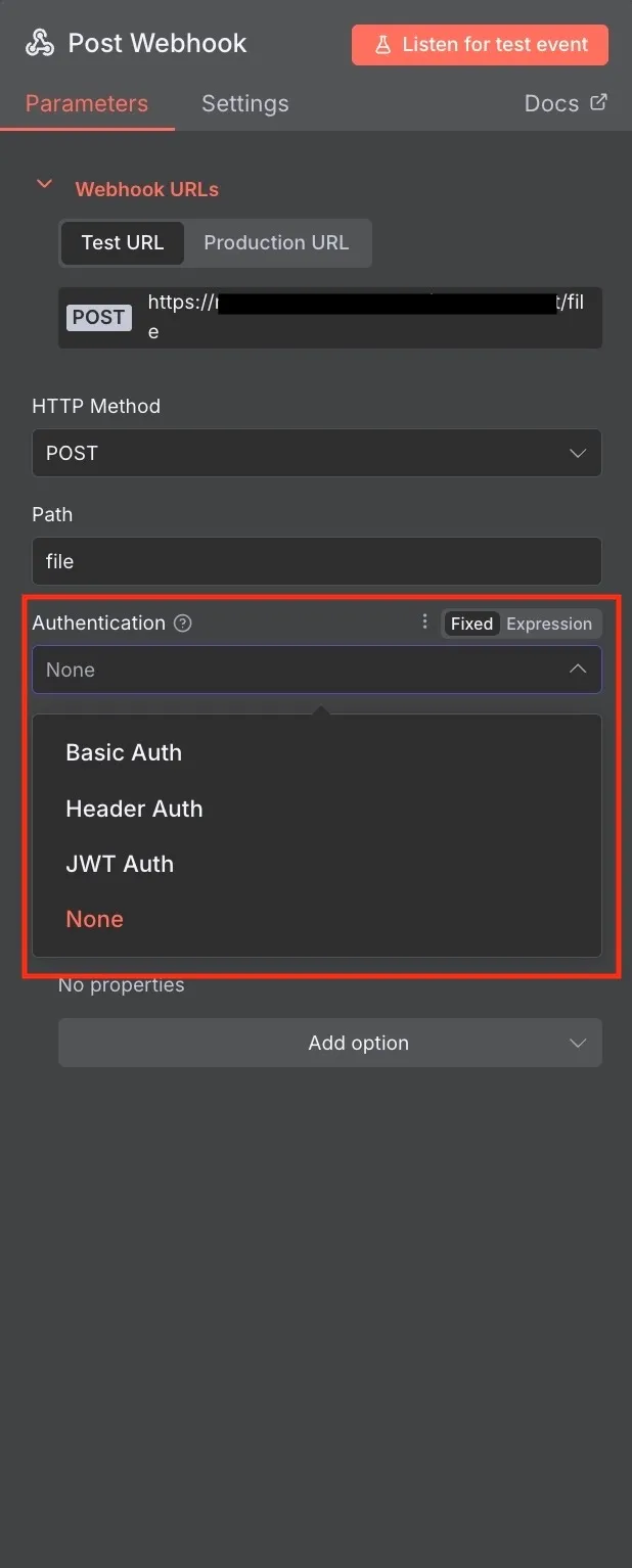 n8n の Webhook ノードは優秀で、Basic Auth や IP 制限などを設定できます。