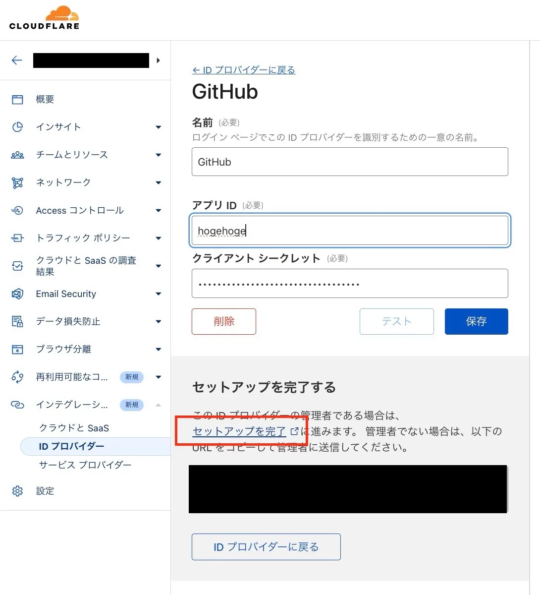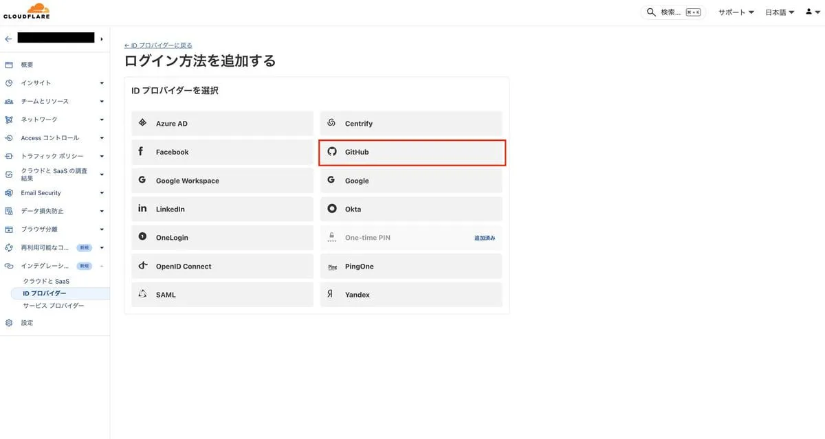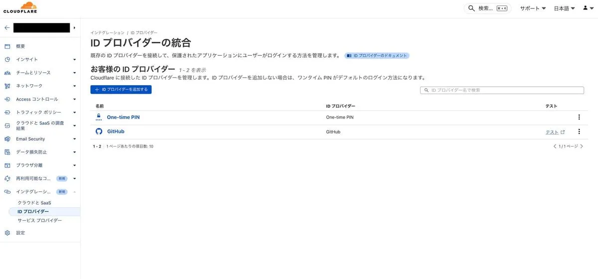 再び Cloudflare Zero Trust の ID プロバイダー設定ページに戻ります。
