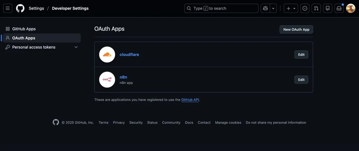 New OAuth App ボタンをクリックして、新しい OAuth アプリケーションを登録します。