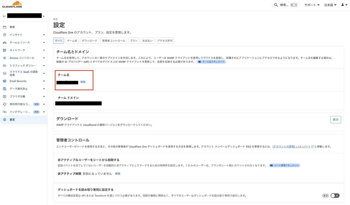 <your-team-name> の部分は Cloudflare Zero Trust のチーム名に置き換える必要があります。