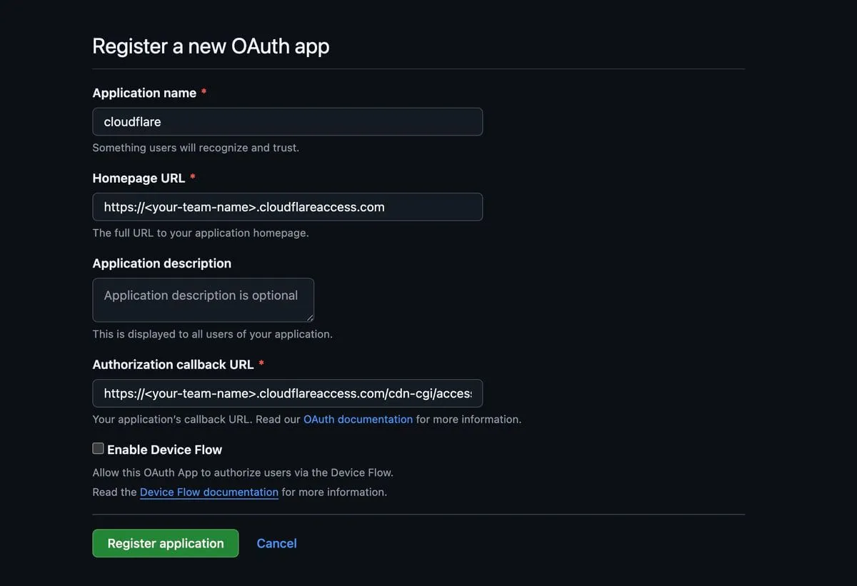 Authorization callback URL は https://<your-team-name>.cloudflareaccess.com/cdn-cgi/access/callback