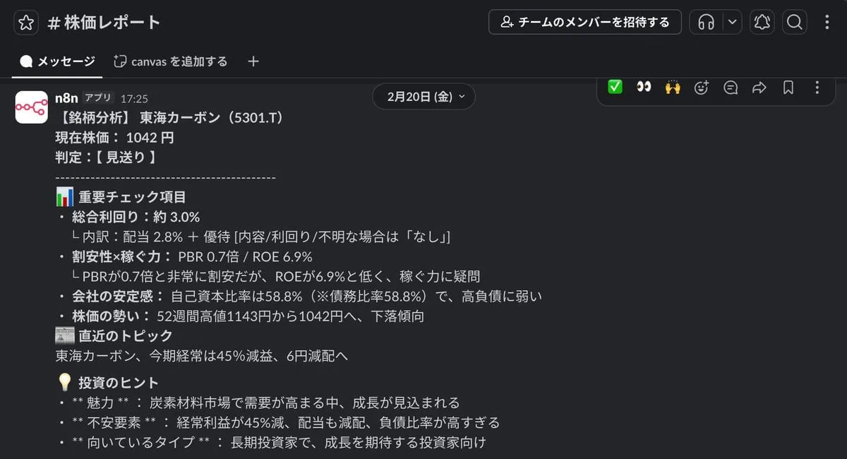 平日夕方、Slack に「株価レポート」が飛んでくるように設定。