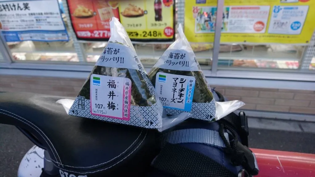 朝ごはんは近くのファミリーマートでおにぎりを購入しました