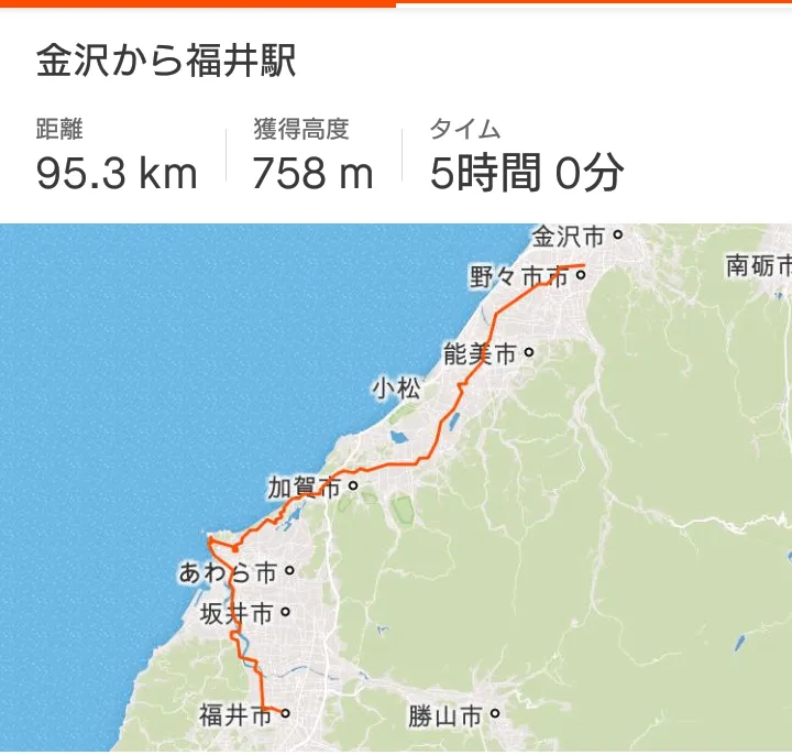 東尋坊から福井駅間が風が強いだけでなく、路面に小石が落ちていたり陥没していたりしてかなり走りづらかったです・・・