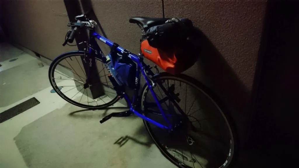 自転車の装備はカメラや輪行バッグ、お金、着替え等を詰め込んでいます