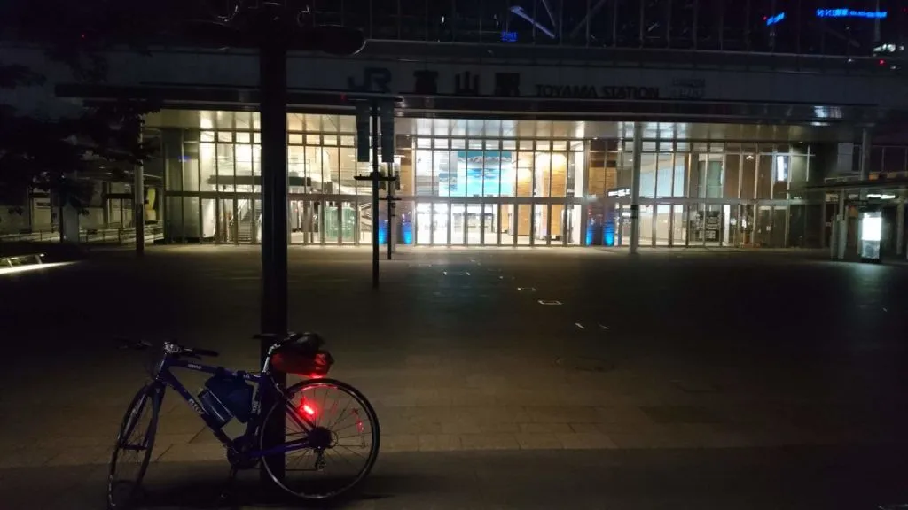 私と同じように深夜に自転車を漕いでいる人とすれ違い親近感を覚えたり、コンビニでたむろしているカップルやグループをみてなにしているのか疑問に思いながら自転車を漕いでいると富山駅に到着しました