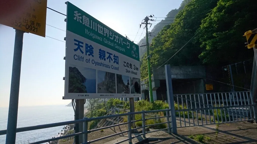 親不知を無事こえると糸魚川駅に到着です