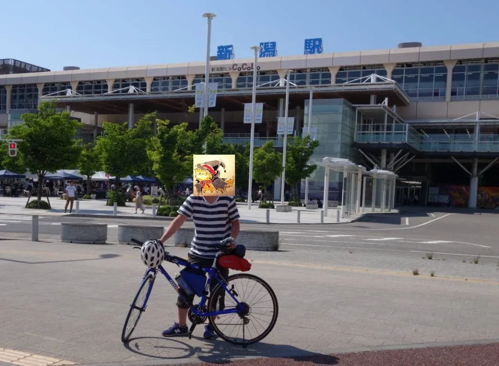 途中で親戚の家で休憩をしたり高校生活でお世話になった道をのろのろと漕いで遅くなってしまいましたが、ついに目的地の新潟駅につきました