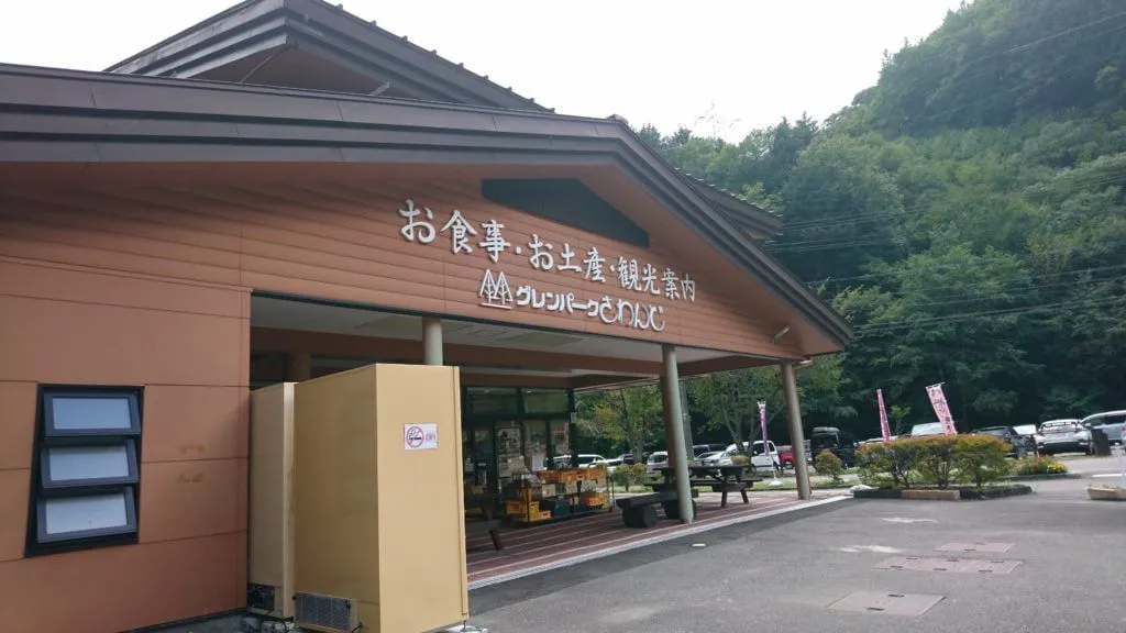 安房峠を下山し、しばらく下り坂が続いている途中でグランパークさわんどという施設があったあめ休憩をしました