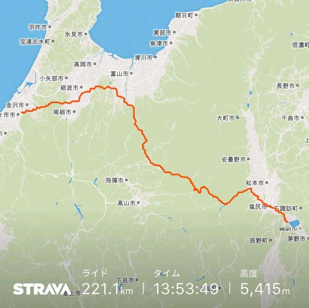 「せっかくだし自転車で行ってみよう」ということで金沢から長野(諏訪湖)まで走ってみました