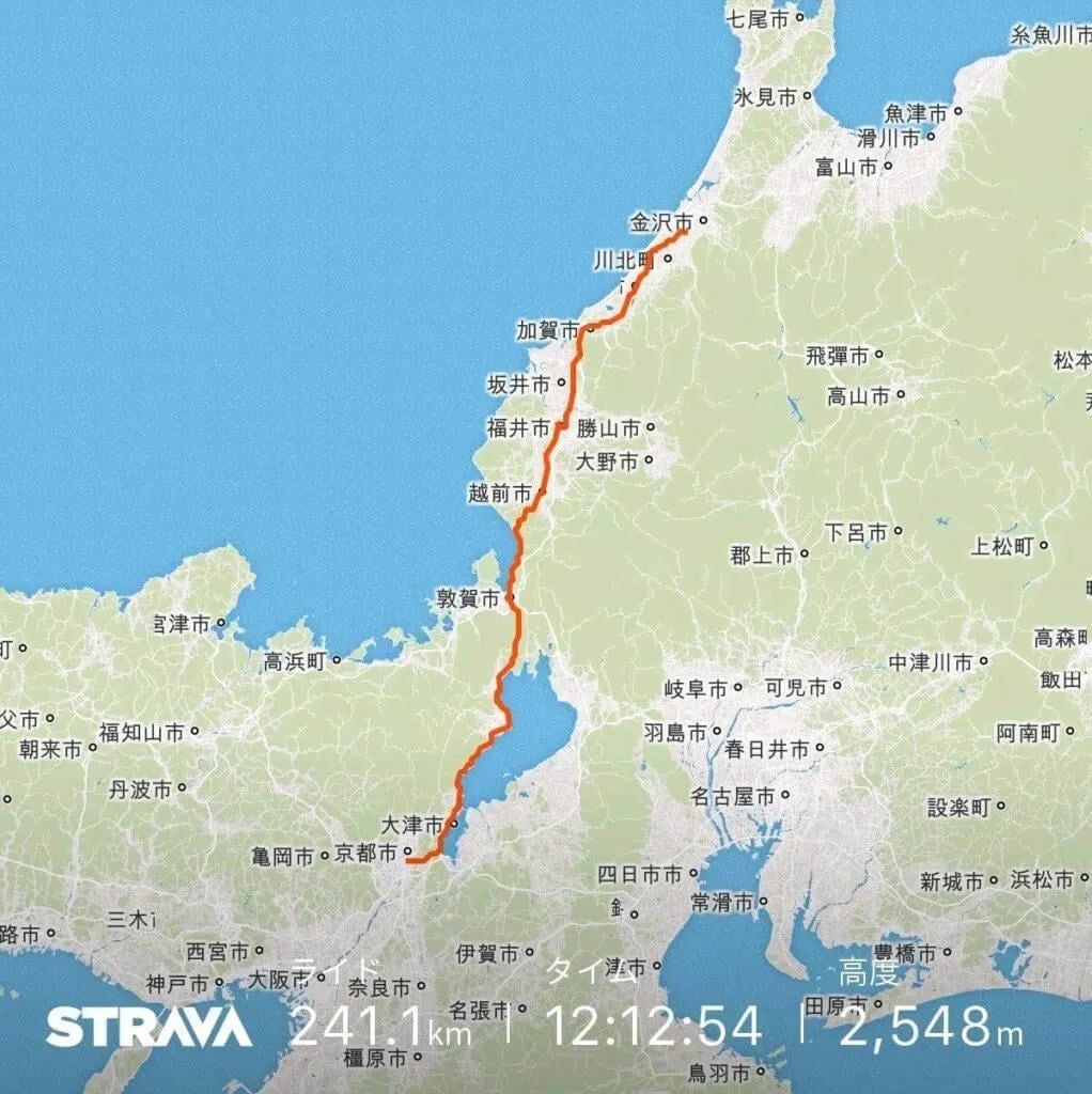 以前に諏訪湖に行き、今度はなるべーく平坦な道走りたいということで金沢から京都に行くことにしました
