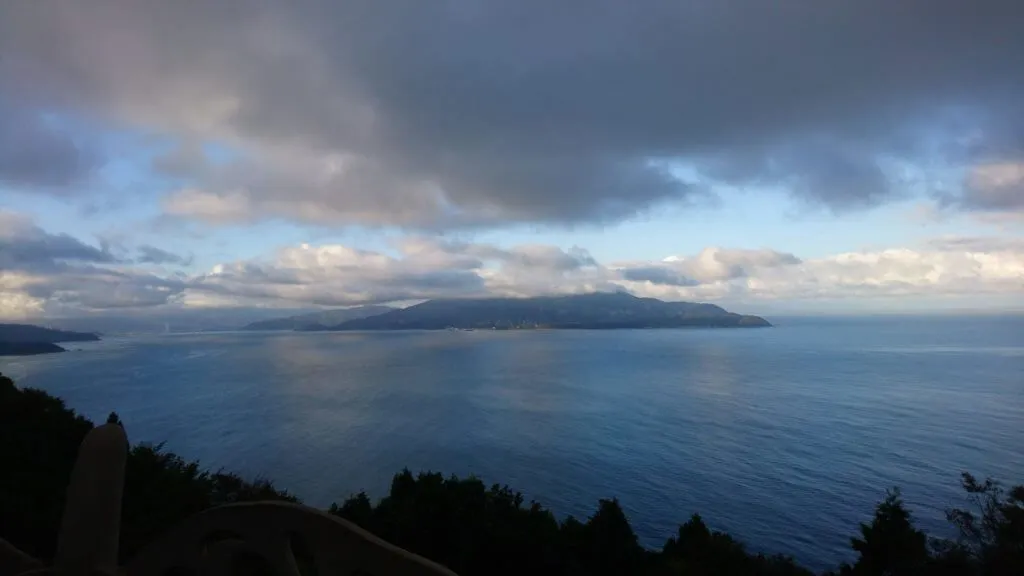 海が青く、海の青さが空に反射し、港や蠑螺が岳・西方が岳が合わさり雄大でした