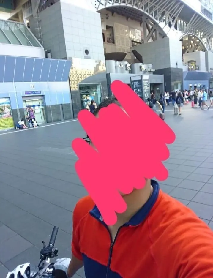 その後、多くの観光客の目があるなかで自転車で颯爽と駆け抜け京都駅に到着です