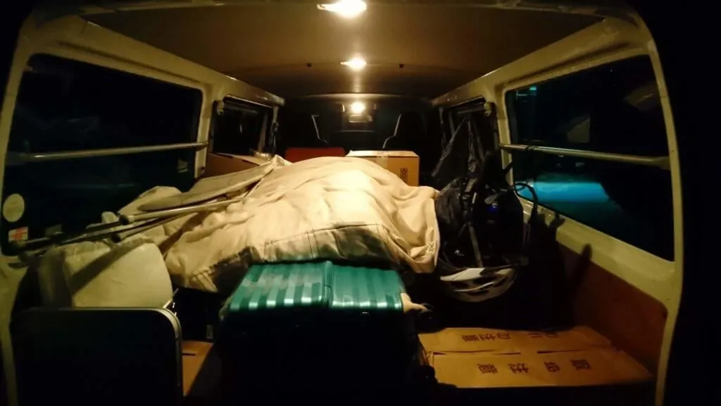 引越し前日に荷物を積み込み、仮眠後出発という流れです