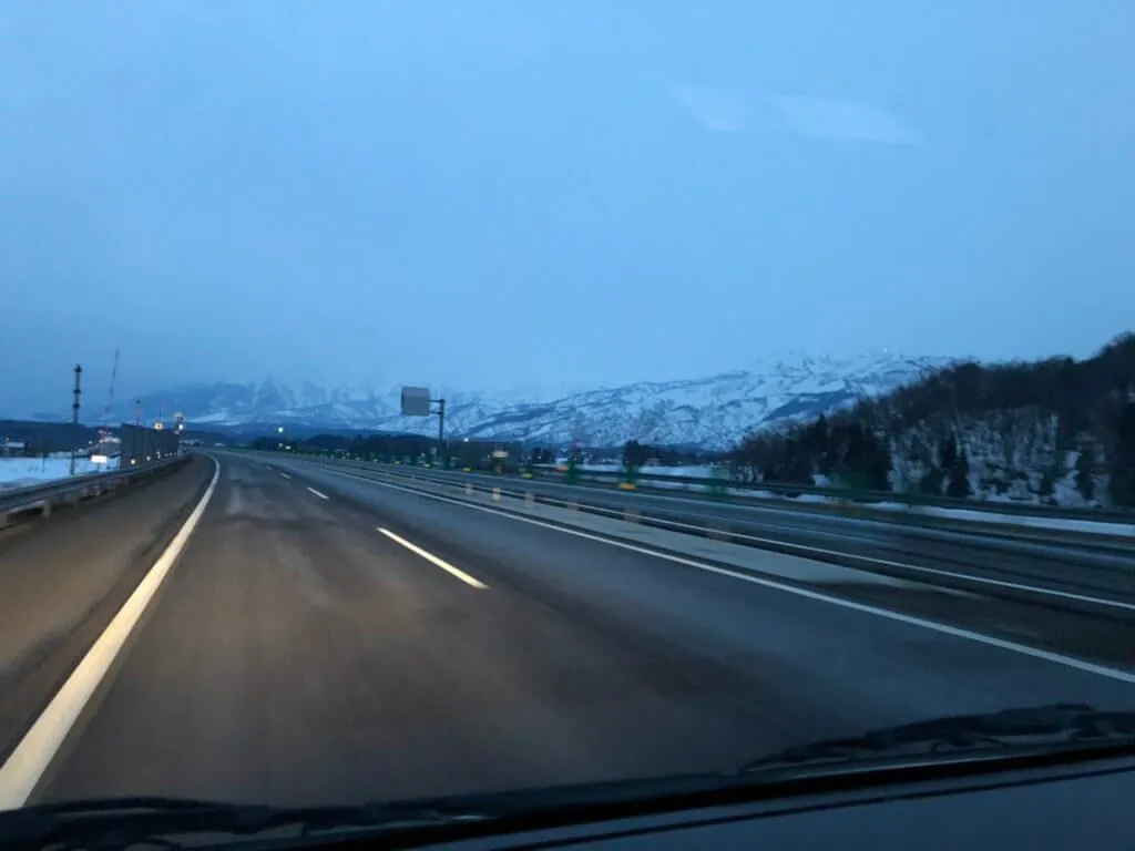 路面には雪はありませんでしたがスタットレスタイヤを履いて(この時期は標準でスタットレス装備)走行しています