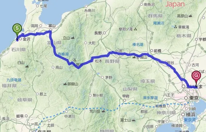 Mapで調べると引越し元から引越し先の総距離は約500kmあります