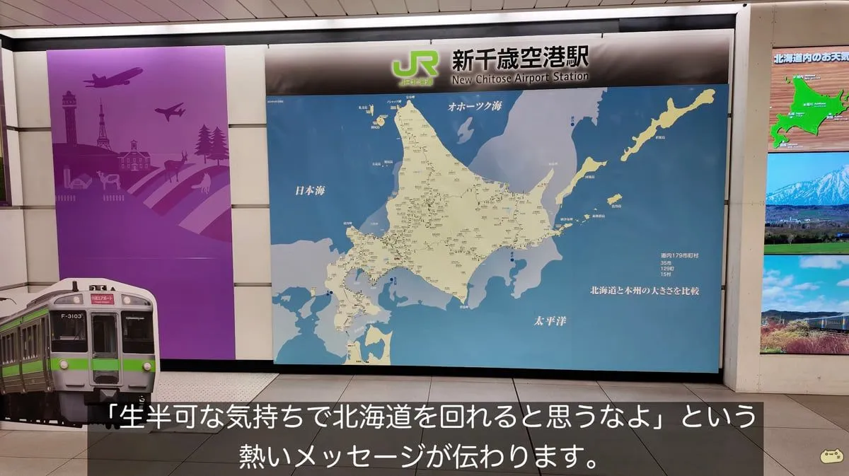 ホテルへ向かうため新千歳空港駅へ行く道中で、北海道の広さを思い知らされます。