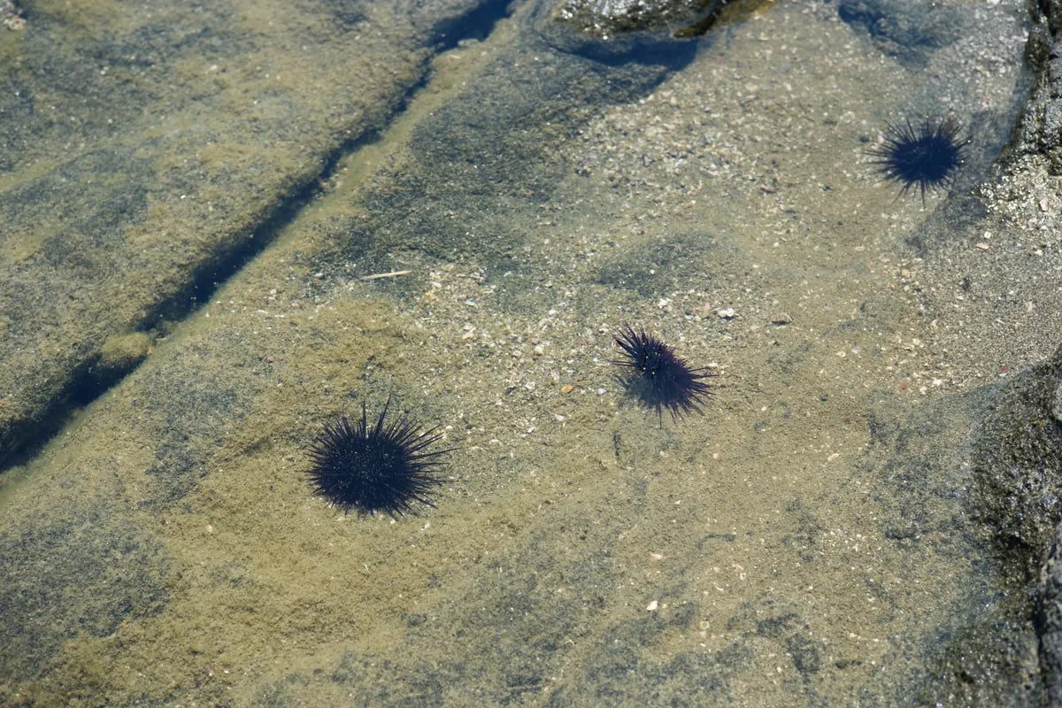 岩の間には無数のウニの姿も。