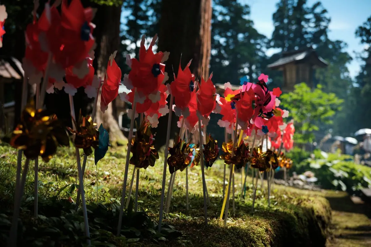 境内には、くるくると回る色鮮やかな風車(かざぐるま)が、