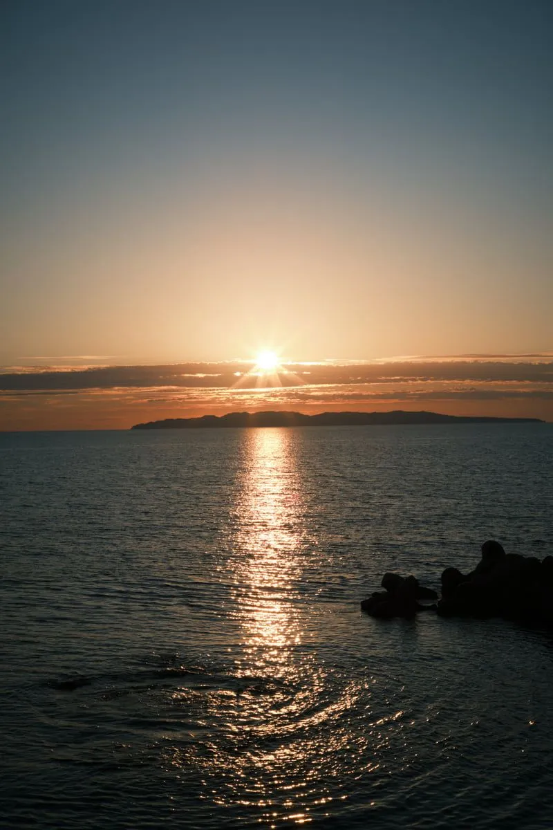 水平線にゆっくりと沈みゆく夕日の壮大なショーは、まさに自然が織りなす絶景です。