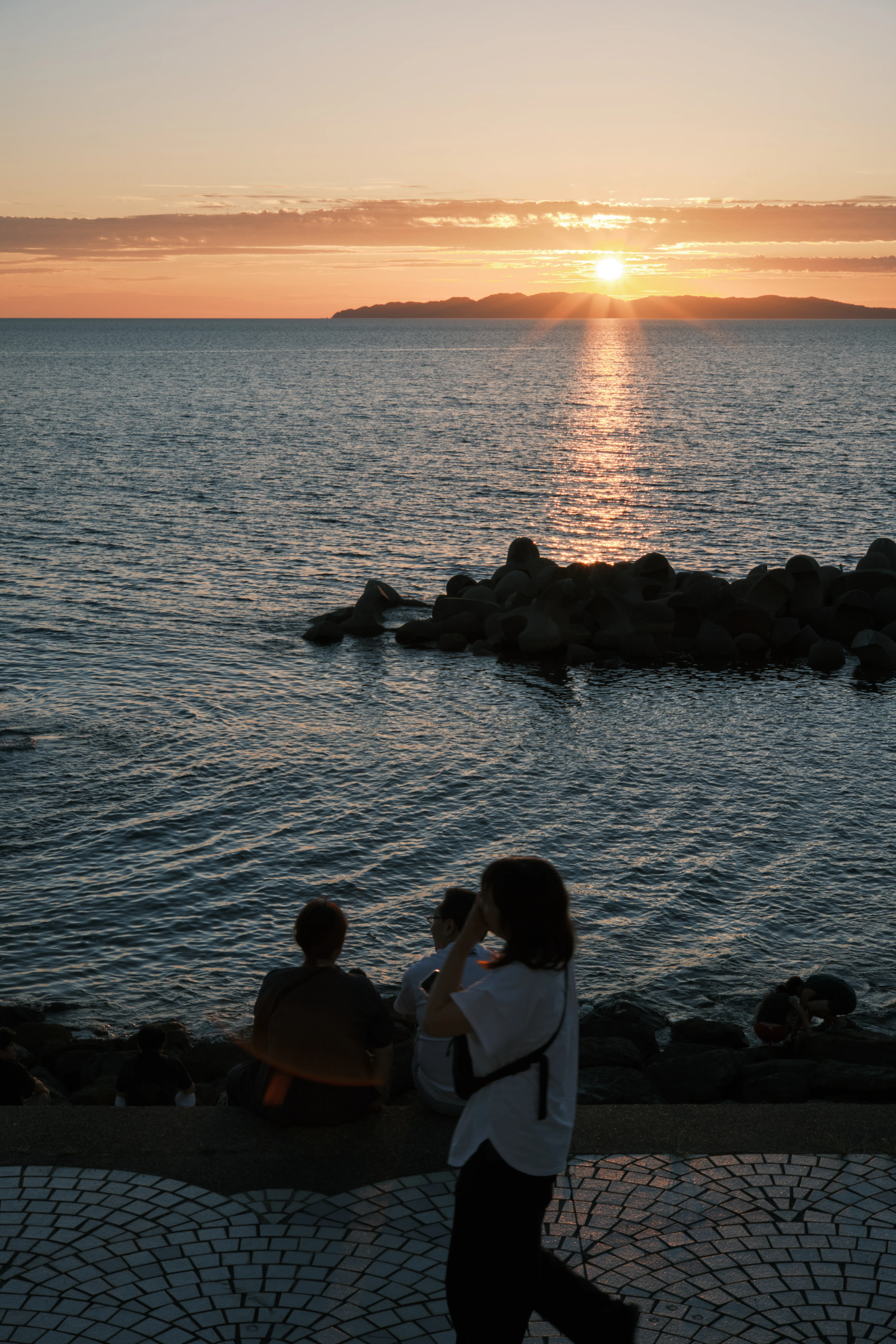 波の音だけが静かに響く中、ゆっくりと日が沈む瞬間は、